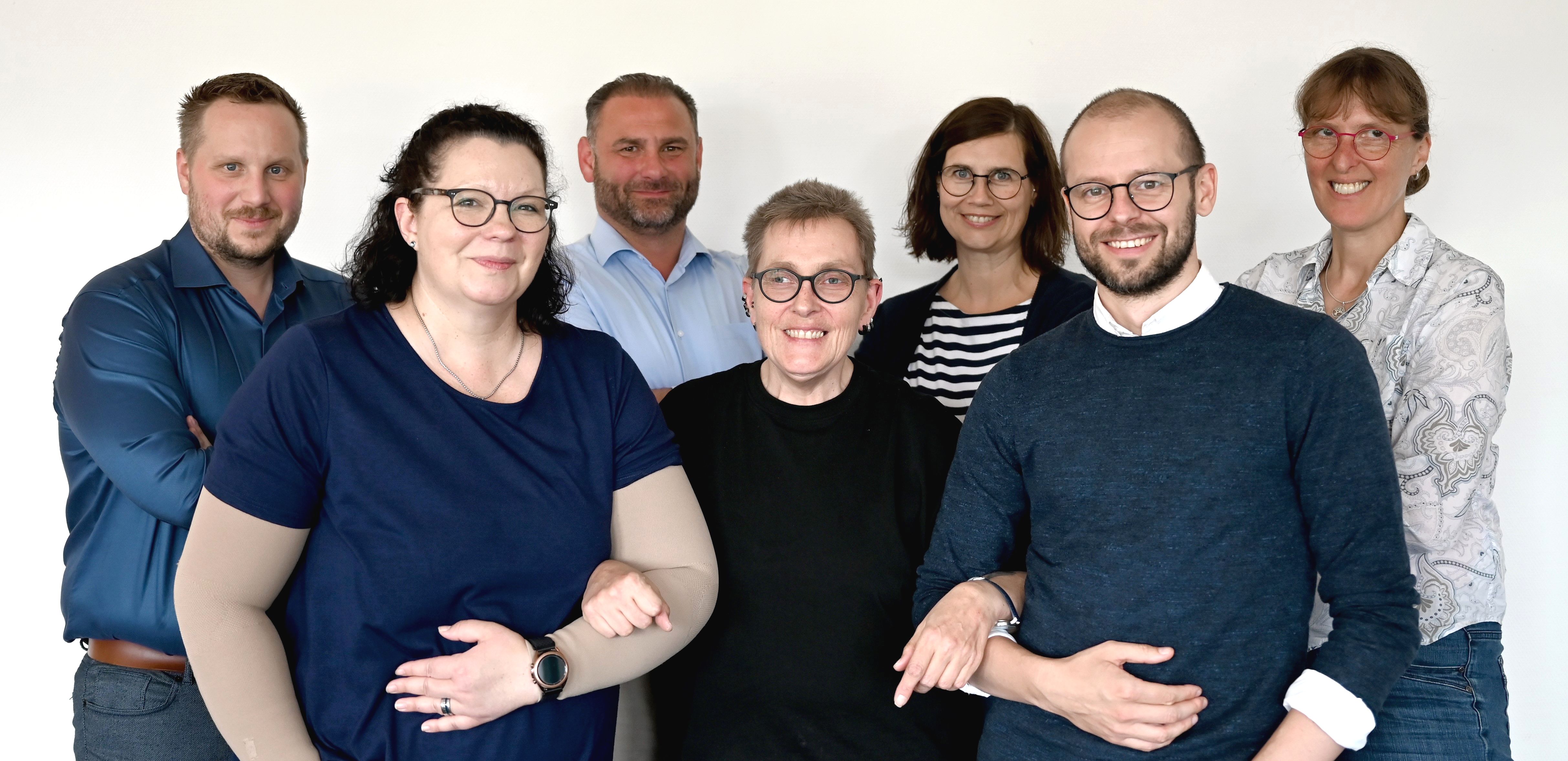 Das Immobilienmanagement-Team (v.l.n.r.): Abteilungsleiter Benjamin Pott, Nicole Haese, Steve Kozole, Karin Binia, Jennifer Lehrhove, Christoph Steffen und Maria Gahlen. Nicht auf dem Foto: Christian Hartmann.